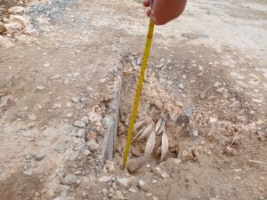 Selain kondisi jalan yang buruk, warga juga menemukan kejanggalan dalam proyek pembangunan jalan rigid. Satu di antaranya adalah volume tulangan besi stros yang diduga sudah dikurangi.