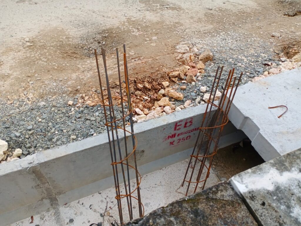 Seorang warga yang enggan menyebutkan nama mengaku telah mengukur tulangan besi tersebut, dan panjangnya hanya sekitar 90 cm. “Di tempat lain, saya lihat tulangan besi strosnya panjang 130-150 cm, dengan ketebalan beskos dan pedel sekitar 10-15 cm,” katanya.